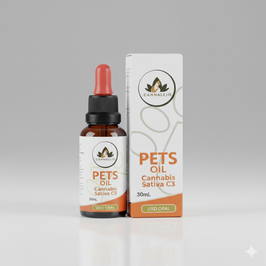 Aceite de cannabis para mascotas al 3 % con extracto natural de flor de cannabis, contiene aceite de oliva extravirgen. Frasco de 30 ml, 30 mg / ml. Producto 100 % colombiano, completamente natural y de uso veterinario.